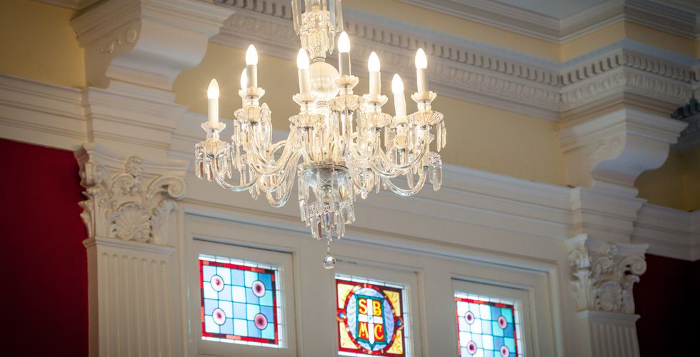 Step inside the Chambers Room, and you'll be transported to a realm of elegance and sophistication reminiscent of a bygone era. This exquisite space exudes the charm of a small ballroom, setting the stage for unforgettable gatherings and memorable events. Ascend the staircase adorned with stained glass, bearing the initials of SBMC, a poignant nod to the building's storied past and original purpose. Each detail serves as a testament to its heritage, infusing the space with a sense of nostalgia and grandeur.